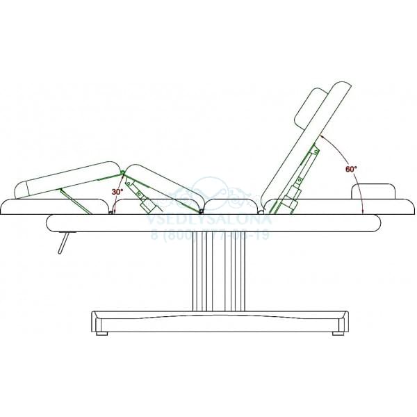 Угол подъема ножной части кушетки 30°