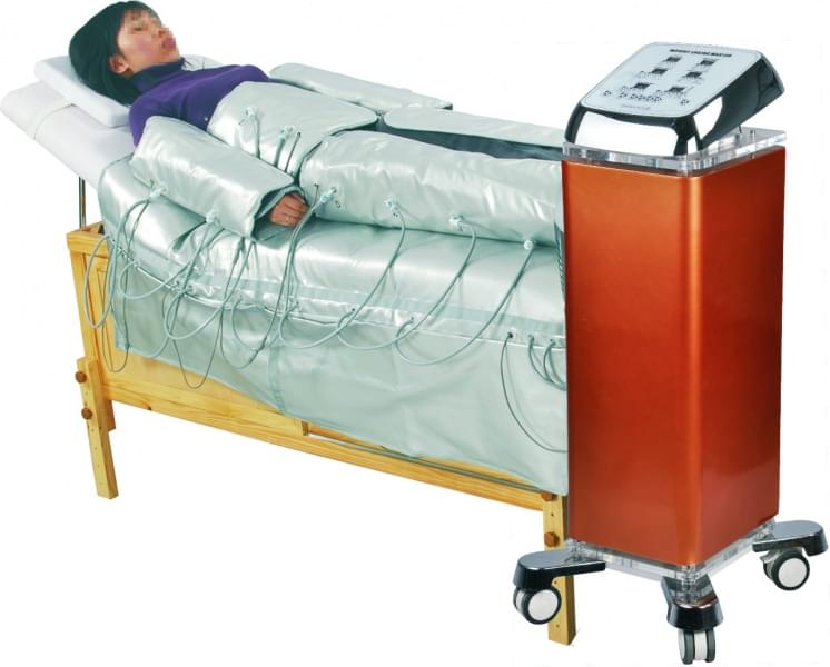 Прессотерапия – это дозированное механическое воздействие на кожу и подлежащие ткани повышенным давлением через специальные манжеты в течение короткого времени. Быстрое закачивание манжет воздухом до 1 - 3 атмосфер создает равномерное сдавливание кожи и подлежащих тканей на больших площадях, что способствует выведению жидкости и продуктов обмена из межклеточного пространства, кровеносных и лимфатических сосудов. Резкое снижение давления в манжетах приводит к расширению сосудов, увеличивая приток крови и активизируя обменные процессы в клетках и тканях.