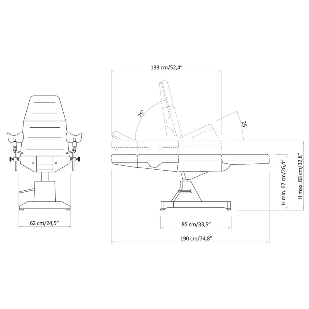 Данная модель очень гибкая в настройке, позволяет подстроить положение под каждого клиента и конкретную процедуру. При необходимости кресло поворачивается в любую сторону – на 360 градусов.
