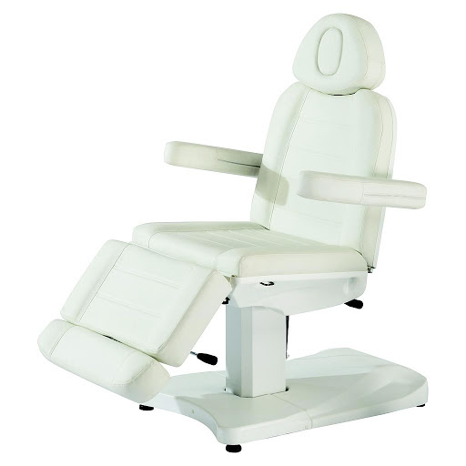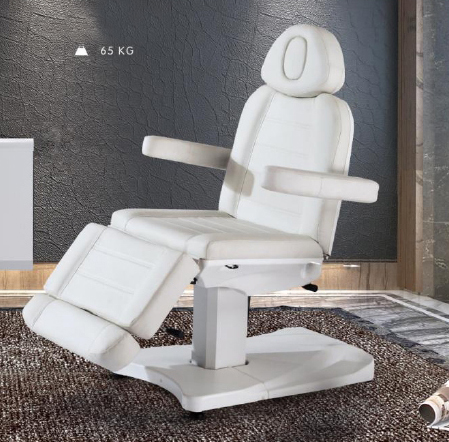 Кресло косметологическое "HM-026" - оснащено 2 электрическими бесшумными моторами. Настройки кресла осуществляются пультом, с помощью которого возможно регулировать высоту подъема и угол наклона спинки. Общий угол наклона кресла регулируется с помощью специального пневматического механизма, рычаг управления которым находится в нижней части спинки. Положение подушки под ноги регулируются механически с помощью специального рычага. Ручная регулировка длины ножной подушки и подголовника с помощью фиксатора. Подголовник имеет отверстие для лица, которое закрывается специальной подушкой. Подлокотники кресла поднимаются при необходимости и раскладываются в горизонтальное положение одновременно со спинкой. Широкие сиденье и спинка. Кресло изготовлено из полиуретана, отделка экокожа высшей категории.