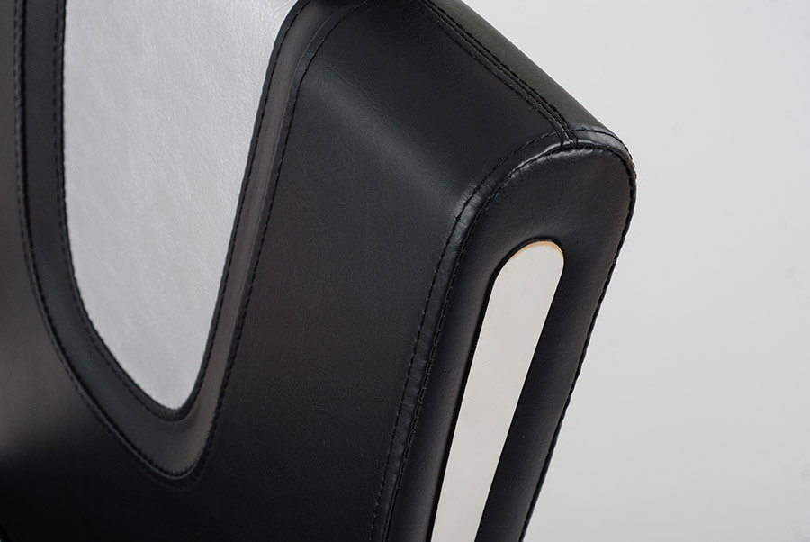 Администраторская стойка «Гламрок» выполнена в соответствующей стилистике – контрастные элементы, каретная стяжка с небольшим объемом, ярко выраженная геометрия и широкие возможности реализации индивидуального дизайна. Внешняя часть лишена мелких деталей, украшена стяжкой. Внутренняя – полноценное рабочее место для сотрудника салона.