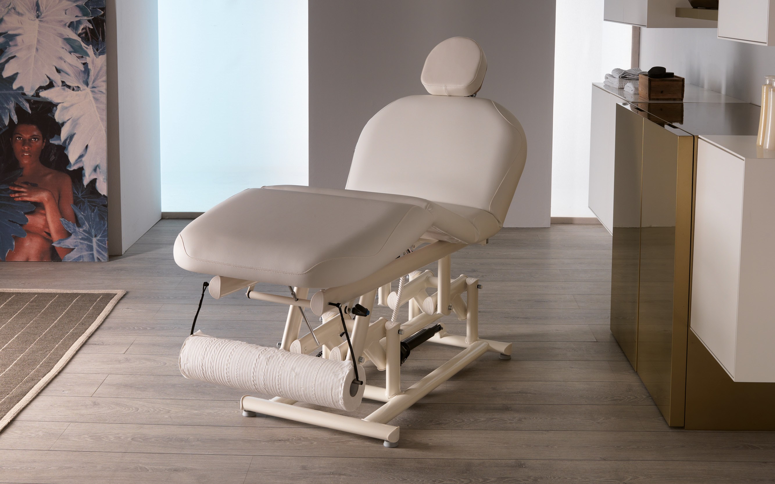 Каркас выполнен из металла, обеспечивающего отменную прочность и устойчивость модели. Матрас имеет эргономичную форму и обшит износоустойчивой и приятной на ощупь искусственной кожей. В комплект входит съемный подголовник американского типа, в котором предусмотрено отверстие для лица. Возможно изготовление в практически любом цветовом решении.