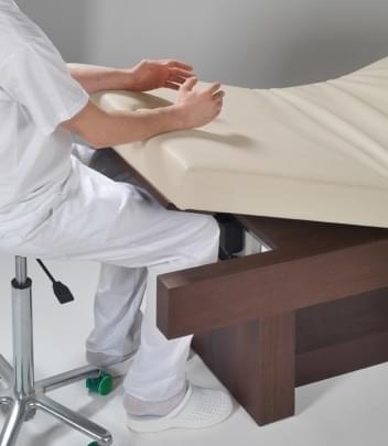 Многофункциональная кушетка "PORTOFINO EVO" - для массажа и SPA процедур для лица и тела, способна обеспечить максимальный комфорт, а также совмещает в себе практичность и оптимизацию рабочего пространства. Кушетка оснащена тремя электромоторами, с помощью которых регулируются высота, наклон спинки и сидения (ножной части), регулировки осуществляются за счет ножного пульта управления. Каркас массажной кушетки выполнен в виде шкафа с выдвижным ящиком, для хранения аксессуаров, инструментов, косметических продуктов. Новый матрас EVO обеспечивает исключительный комфорт благодаря особой форме, отличающейся регулируемыми встроенными подлокотниками с изменяемым наклоном и встроенным подголовником с отверстием для лица с заглушкой, подголовник также регулируется по углу наклона. Значительно облегчает массажисту выполнение различных видов массажа. В частности, позволяет занять более удобное лежачее положение, поскольку подлокотники помогают полностью расслабить мышцы спины и шеи, благодаря чему повышается эффективность массажа. Матрас EVO — это многофункциональный эргономичный матрас для выполнения процедур по уходу за лицом и телом.