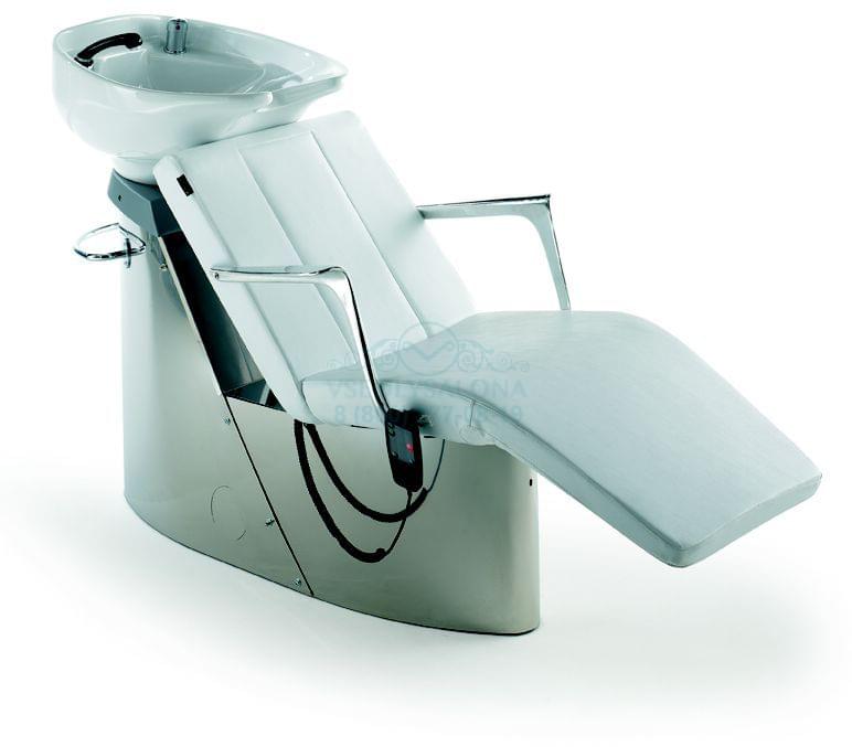 Мойка с креслом, на прочном каркасе из полированной стали. Мойка комплектуется глубокой керамической раковиной белого цвета с регулировкой угла наклона, комплект смесителя с хромированной лейкой душа.Удлиненная подножная часть кресла регулируется по высоте с помощью ручного пульта управления, встроенная функция вибромассажа, позволит клиенту расслабиться и получить дополнительный эффект массажа. Мягкие элементы кресла обтянуты искусственной кожей высшего качества, подлокотники изготовлены из хромированного металла. Возможна комплектация с черной раковиной. Размер (ДхШхВ):135х64х107