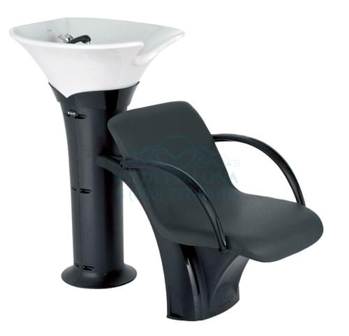 Мойка с креслом, на пластиковом каркасе черного цвета, раковина белая. Мойка комплектуется глубокой керамической раковиной с регулировкой угла наклона и комплектом смесителя. Мягкие элементы обтянуты искусственной кожей высшего качества, пластиковые подлокотники черного цвета. Цвет – чёрный. Размер (ДхШхВ): 65х120х133.