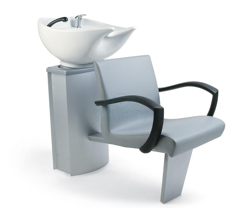 Мойка парикмахерская. Серебристый металлический каркас, раковина белая, серая или черная, кресло из кожзама, подлокотники - черный полиуретан. Размер: 59х116х99