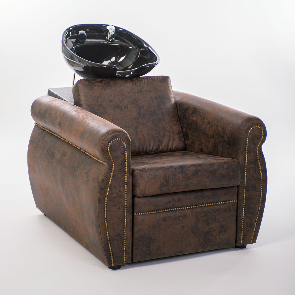 Парикмахерская мойка "Мэйт" - искусственная кожа с декоративными металлическими элементами. Для установки керамических раковин различных модификаций предусмотрены универсальные отверстия.