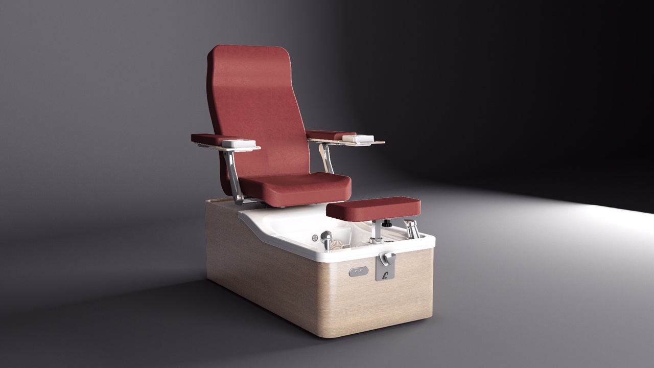Обивка всех мягких элементов кресла выполнена из качественной экокожи. Кресло оснащено электрическим механизмом, при помощи которого регулируется положение спинки сиденья. Благодаря наличию удобных подлокотников и мягкой подставки под ноги клиент может полностью расслабиться во время процедур. Комплекс имеет беструбную гидромассажную систему, за счет чего обеспечивается гигиеничность и простота ухода за оборудованием.