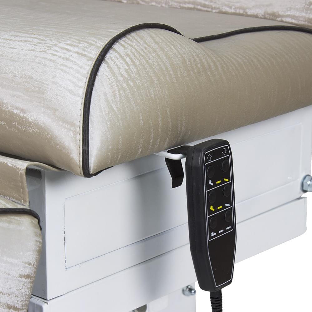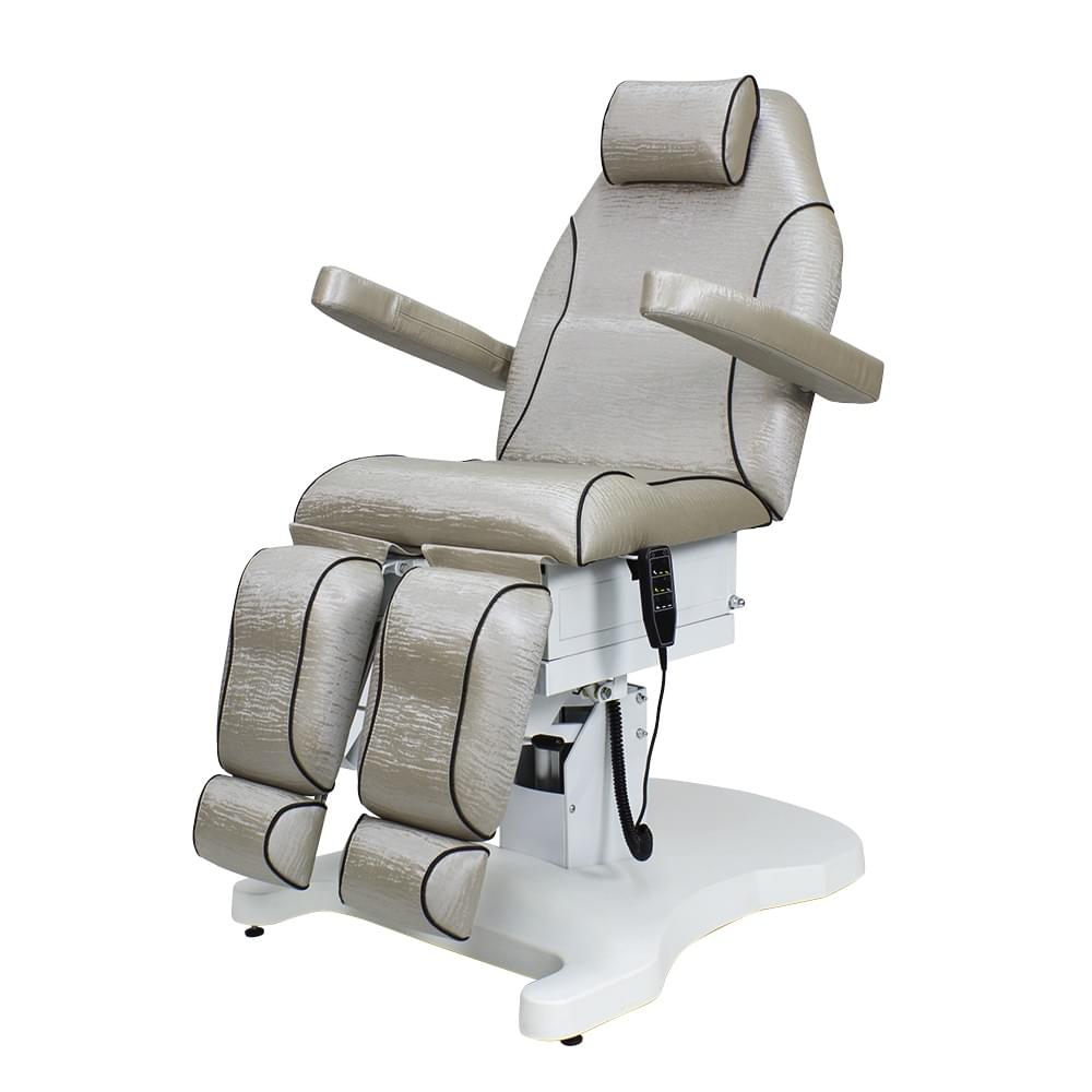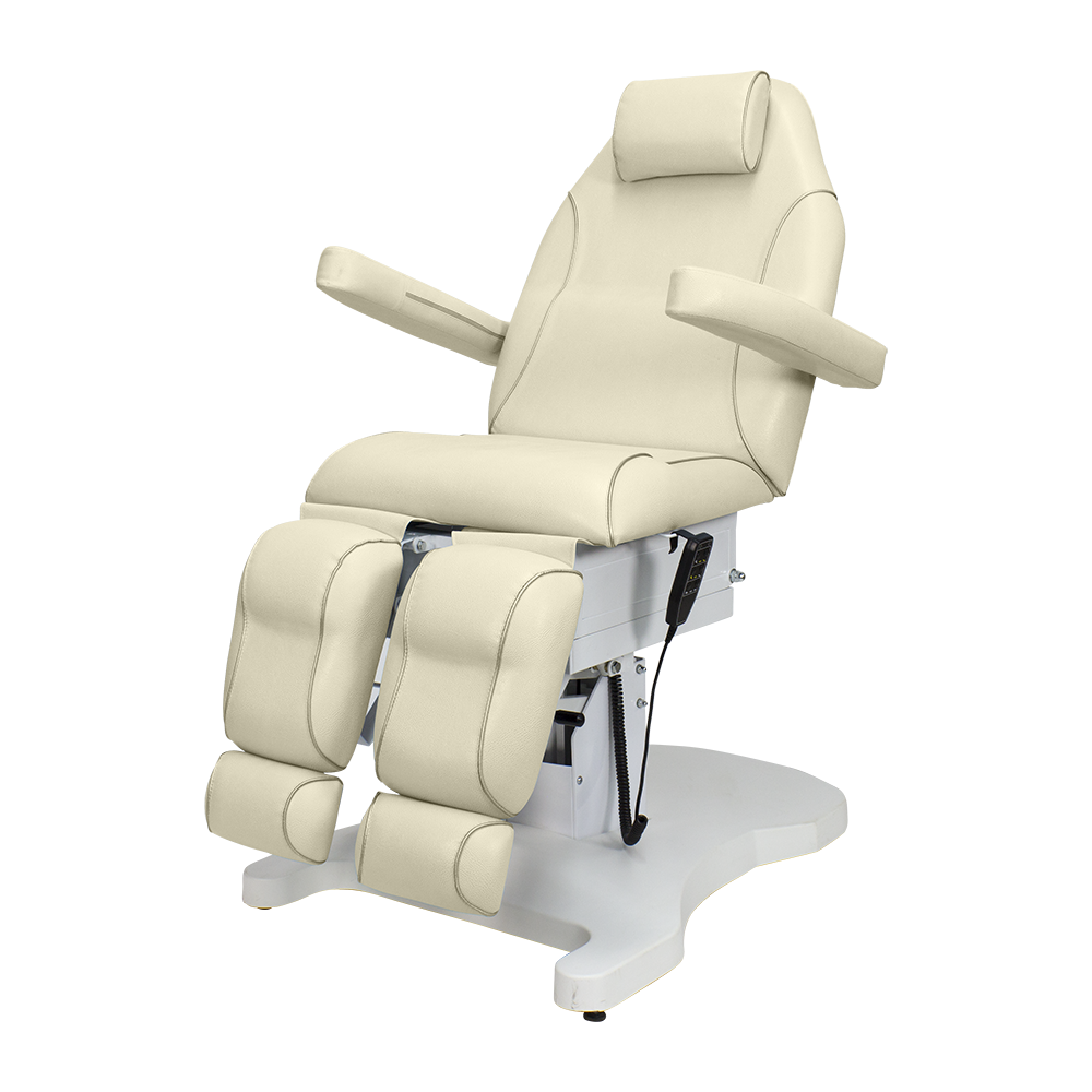 В кресле предусмотрена высокая спинка и подголовники, есть подлокотники, подушки, выступы для ног. Регулировать высоту и наклон можно при помощи пульта управления. поэтому ваши клиенты будут чувствовать себя хорошо даже при долгих процедурах.