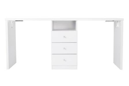 Многофункциональный маникюрный стол ДУО предназначен для работы двух мастеров одновременно. Стол укомплектован тумбой посередине, где мастера могут удобно хранить все необходимые инструменты. Тумба оснащена полкой и тремя выдвижными ящиками.