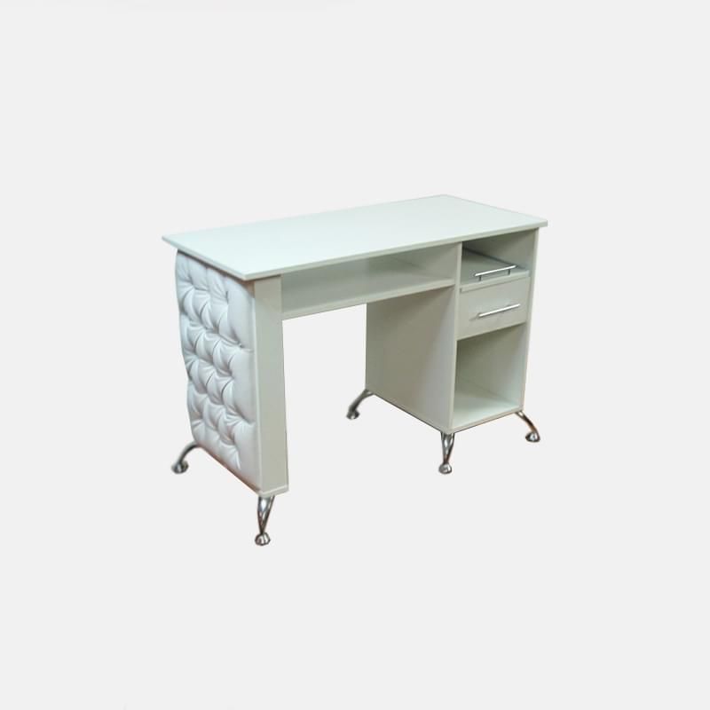 Оригинальный дизайн с каретной стяжкой станет настоящим украшением современного маникюрного салона. А учитывая, что цвета каретной стяжки и ДСП можно выбрать индивидуально, вы получаете по-настоящему универсальное решение. Модель доступна в разных размерах, можно заказать нужные вам габариты.