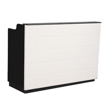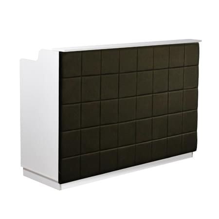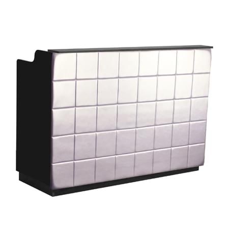 Стойка администратора «Codino» – стандартная прямоугольная модель ресепшна. Каркас стойки выполнен из ДСП, спереди модель обита искусственной кожей. Передняя панель декорирована стяжкой в форме квадратов. Можно выбрать любой цвет искусственной кожи из представленных в каталоге.