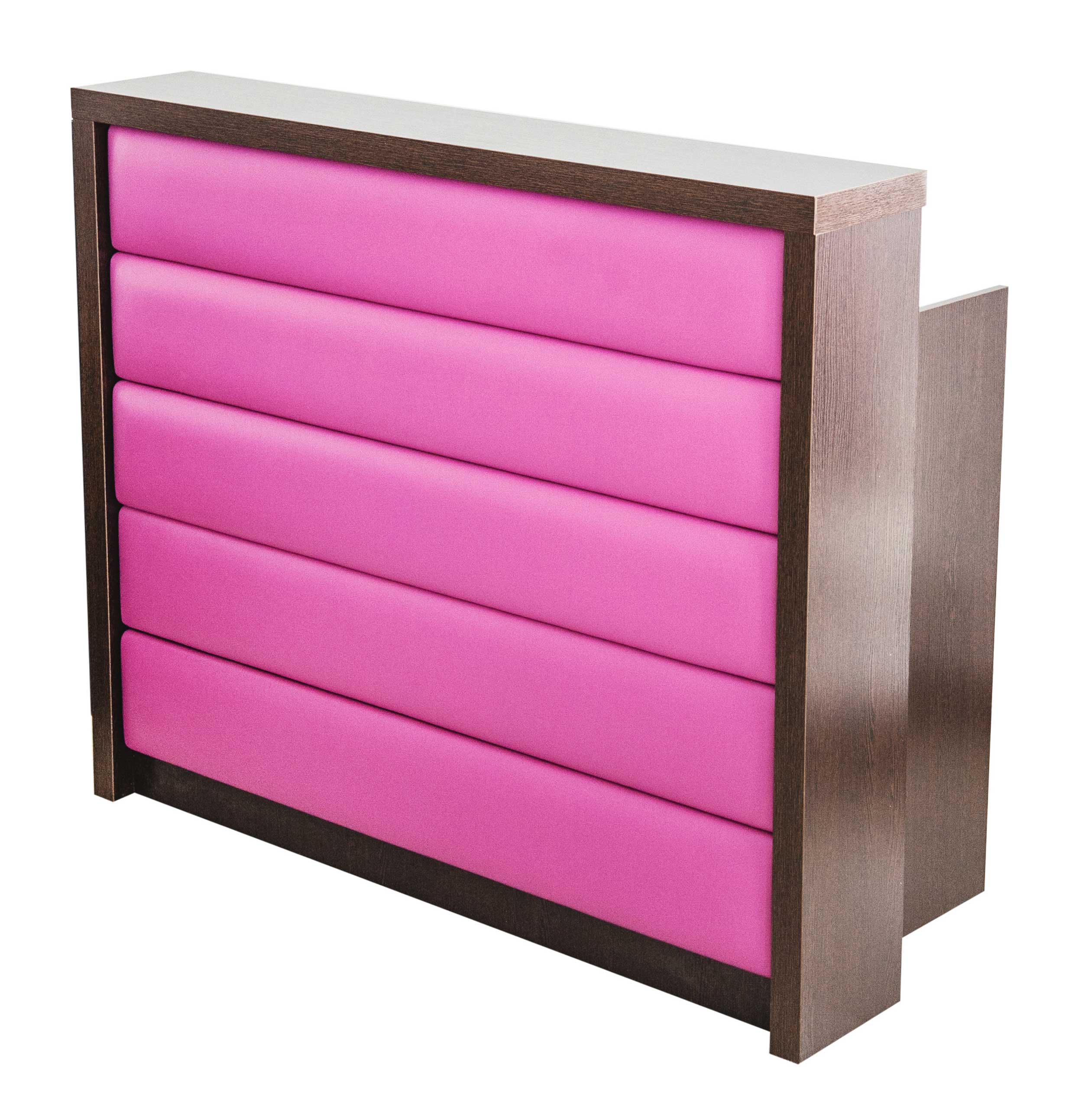 Администраторская стойка «Соната» сразу же привлекает к себе внимание. Каретная стяжка с мягкой текстурой выглядит современно и стильно, придает вашему заведению статуса и изысканности. Дополнительный эффект достигается за счет использования элегантных резных ножек, выступающих в роли некоего акцентного элемента. Со стороны администратора практически всю площадь занимают полочки и дверки, где можно разместить все для работы и личные вещи, если надобность в этом есть. Цвета отделки можно выбрать практически любые, что позволяет реализовать самые креативные идеи и придать вашей парикмахерской или салону красоты больше индивидуальности.