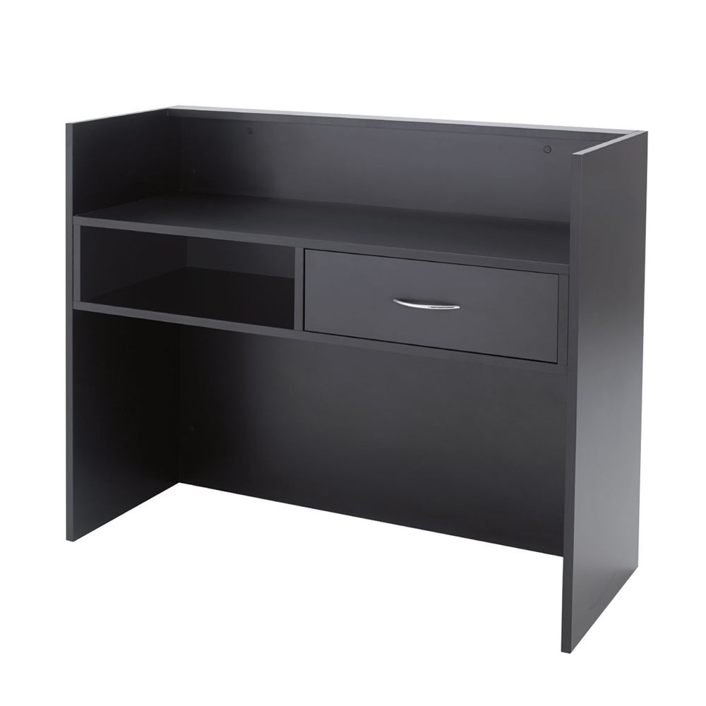 Стойка администратора «Gift» – прямоугольная модель из ламината, выполненная в минималистичном стиле. По бокам располагаются деревянные панели, которые делают рабочую зону более изолированной. Со стороны администратора стойка оснащена столешницей, под которой располагается выдвижной ящик с ручкой и открытая полка.