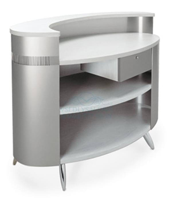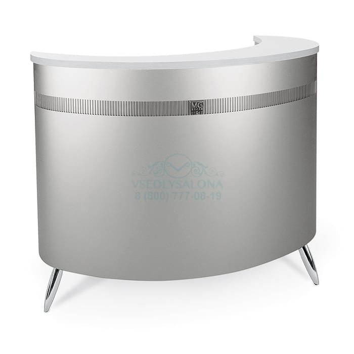 Стойка администратора. Фасад - серебристый металл, тумбы и столешница - ламинат. Длина 130см или 180см. Размер: 130/180х66х105
