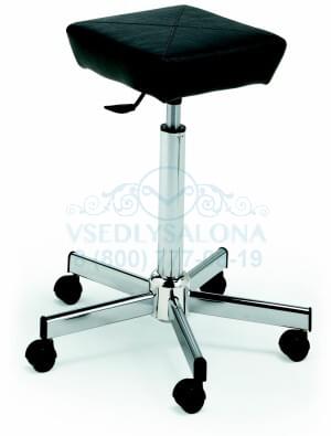Стул для мастера без спинки, мягкие элементы стула обиты искусственной кожей, имеет квадратную форму. Комплектуется металлическим пятилучьем на колесах. Пневматическая регулировка высоты. Размер (ДхШхВ):60х60х87