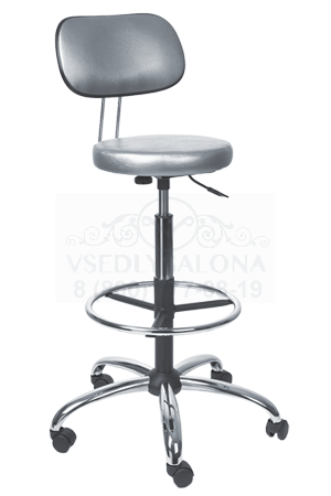 Табурет низкий Т2 (со спинкой, пневматика высокая хром с опорой для ног, пятилучье хром на колесах). Размеры: В60-87 см