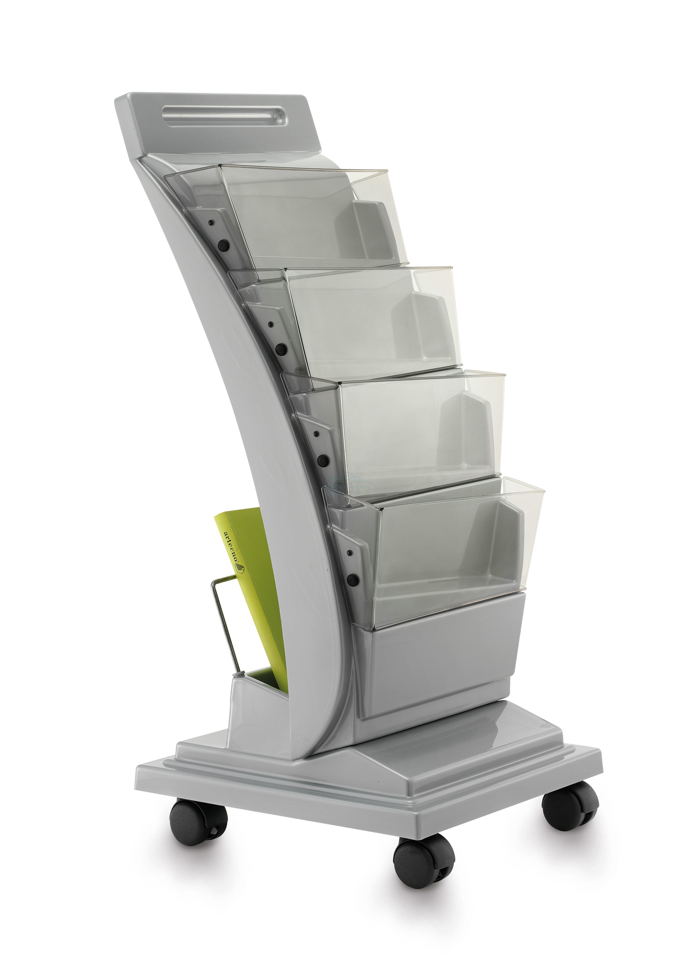 Тележка для журналов из пластика на колесах. Цвет: черный, серый.