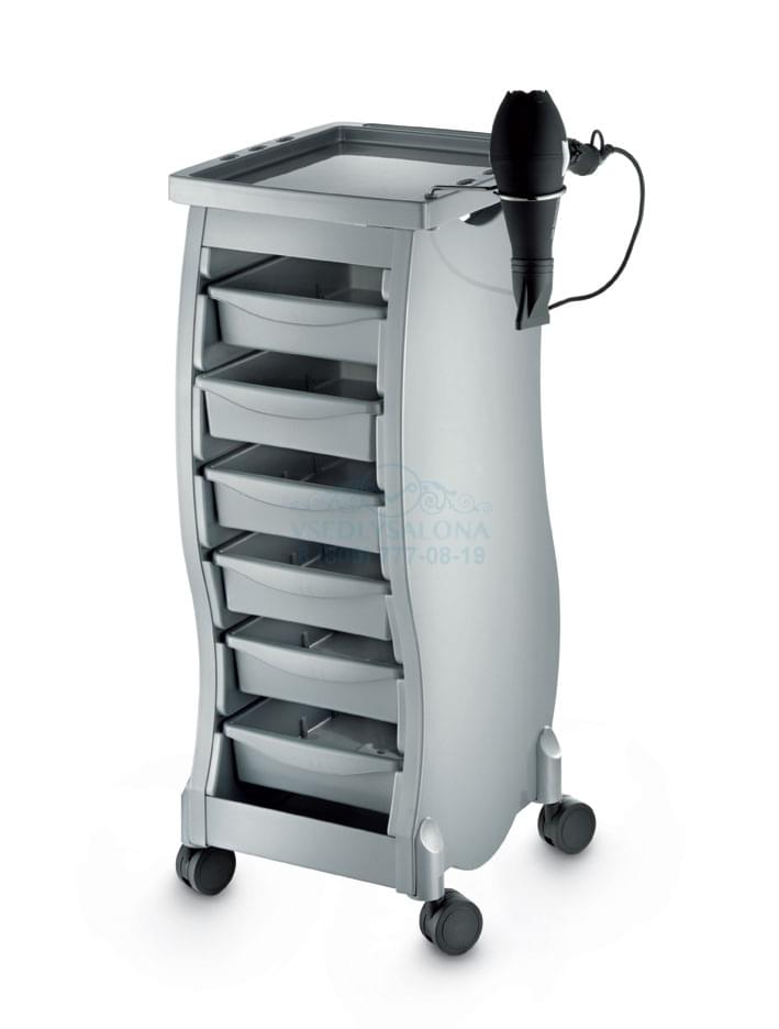 Тележка парикмахерская выполнена из пластика, на колесиках, с выдвижными ящиками. Цвет: черный, серый. Размер (ДхШхВ): 37х44х99