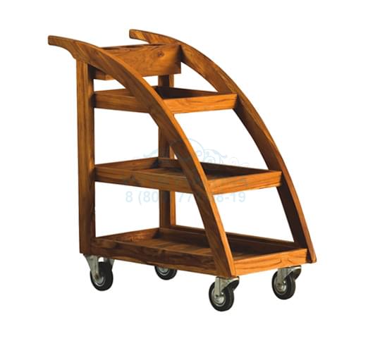 Передвижная тележка SUMBA имеет три полки. Она отличается элегантностью и функциональностью. Может быть изготовлена из тикового дерева или дерева венге, что делает ее чрезвычайно привлекательной для ценителей модных веяний дизайна интерьеров.