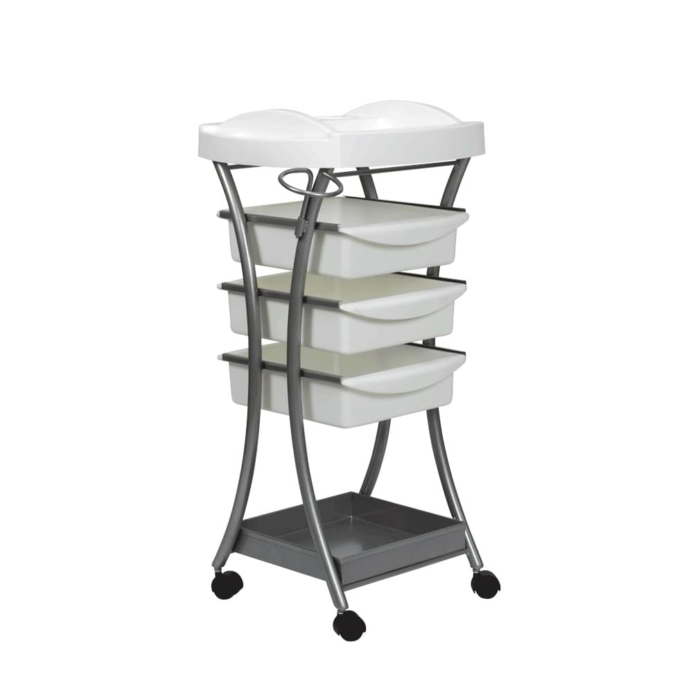 В комплекте есть съемный держатель для фена, окрашенный в цвет каркаса парикмахерской тележки.