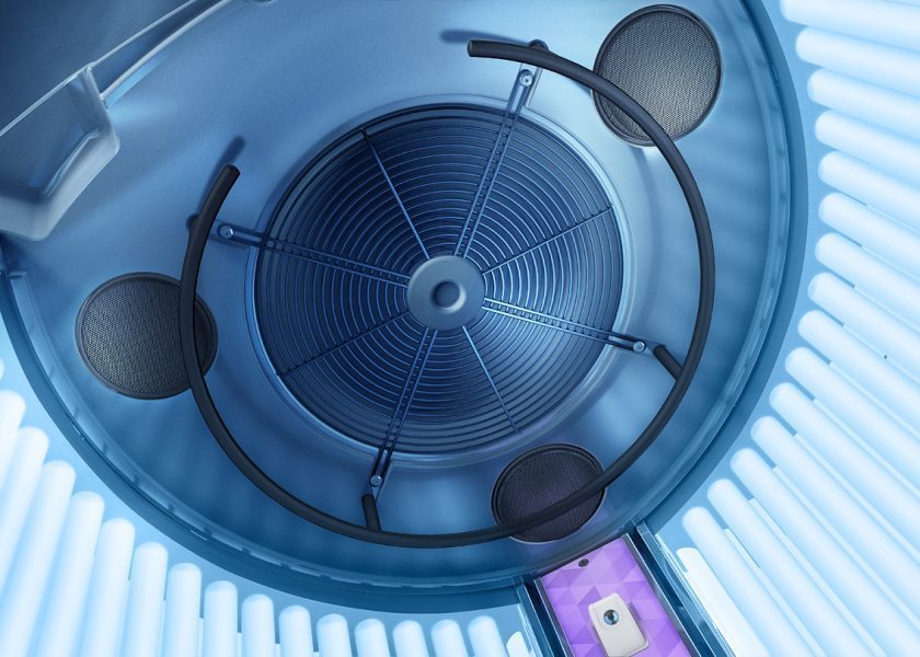 1. Систему Qsens с 2 форсунками, распыляющими освежающий бриз, окутывающий тело во время сеанса загара, с определенным интервалом