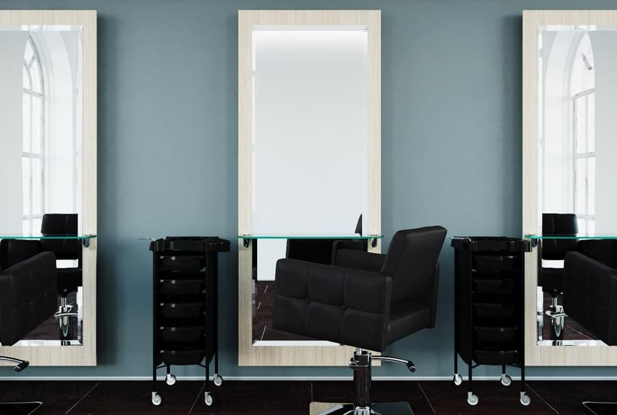Зеркало размещается вертикально, способ крепления – настенный. Это одностороннее зеркало, предназначенное только для одного мастера. Под заказ возможно изготовление в любом размере. Доступен широкий выбор цветов материала рамы.