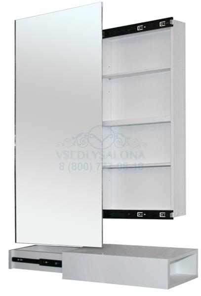 Зеркало АРКО Зеркало одностороннее, каркас ламинированное ДСП. Совмещает в себе две фукции: шкаф с полками и рабочее место для парикмахера. Размер (ДхШхГ): 1000х600х145