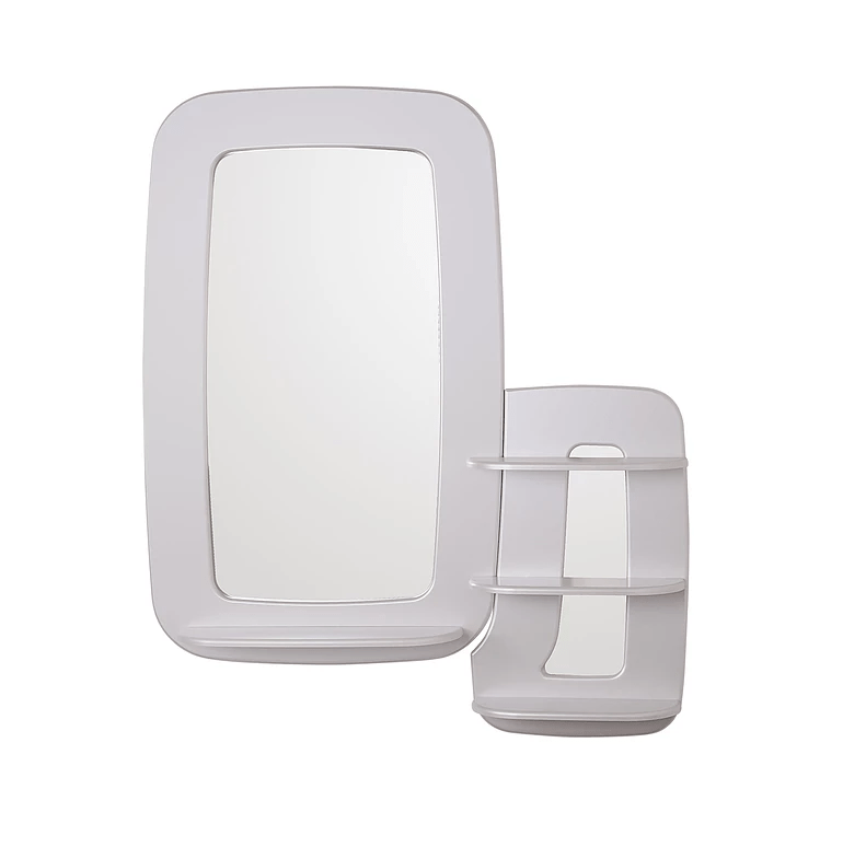 Одностороннее зеркало МЦ-022 из высококачественного МДФ оснащено специальными вместительными полками для косметики, которые могут крепиться как к самому зеркалу, так и отдельно от него. Каркас зеркала покрыт высококачественной ПВХ пленкой, крепится к стене.