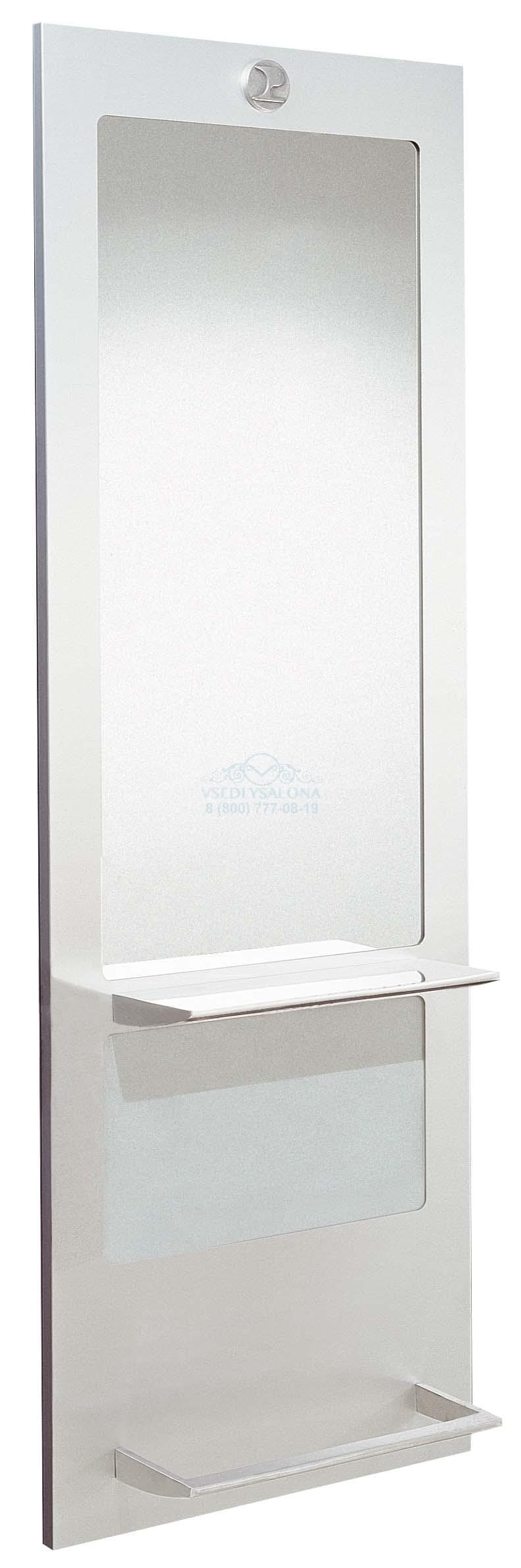 Зеркало парикмахерское в раме из алюминия, плоская хромированная столешница с фенодержателем, подставка под ноги. Возможен вариант с подсветкой. Крепление к стене. Размер (ДхШхВ): 68х23х200