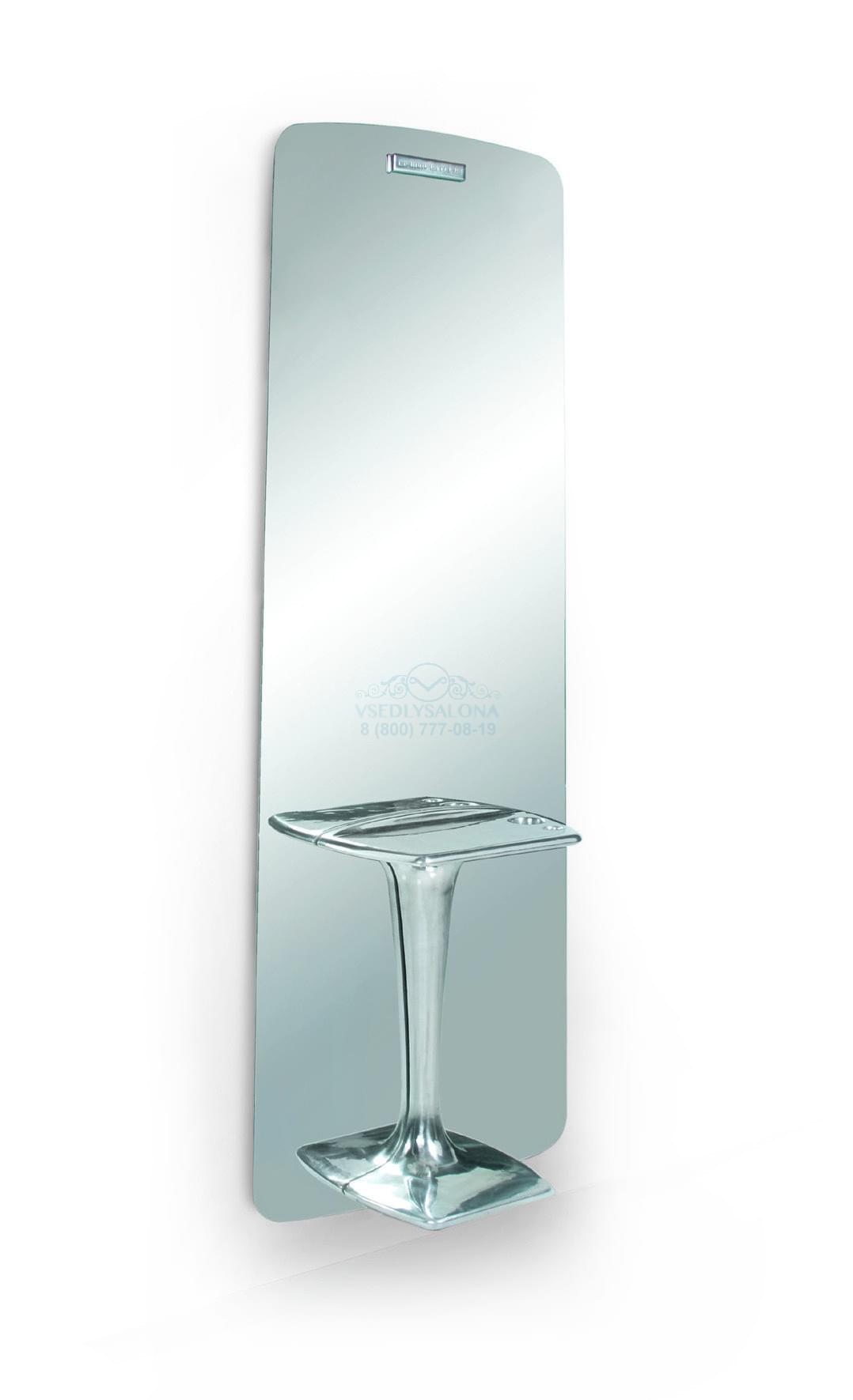Зеркало парикмахерское, одностороннее, крепление к стене. Металлическая хромированная столешница и подставка под ноги. Размер: 187х70х21