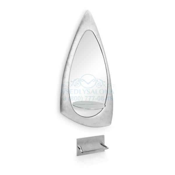 Зеркало парикмахерское, одностороннее, крепление к стене. Металлическая хромированная столешница и подставка под ноги, рама из акрила, дерева или серебристого металла. Размер: 210х80х25